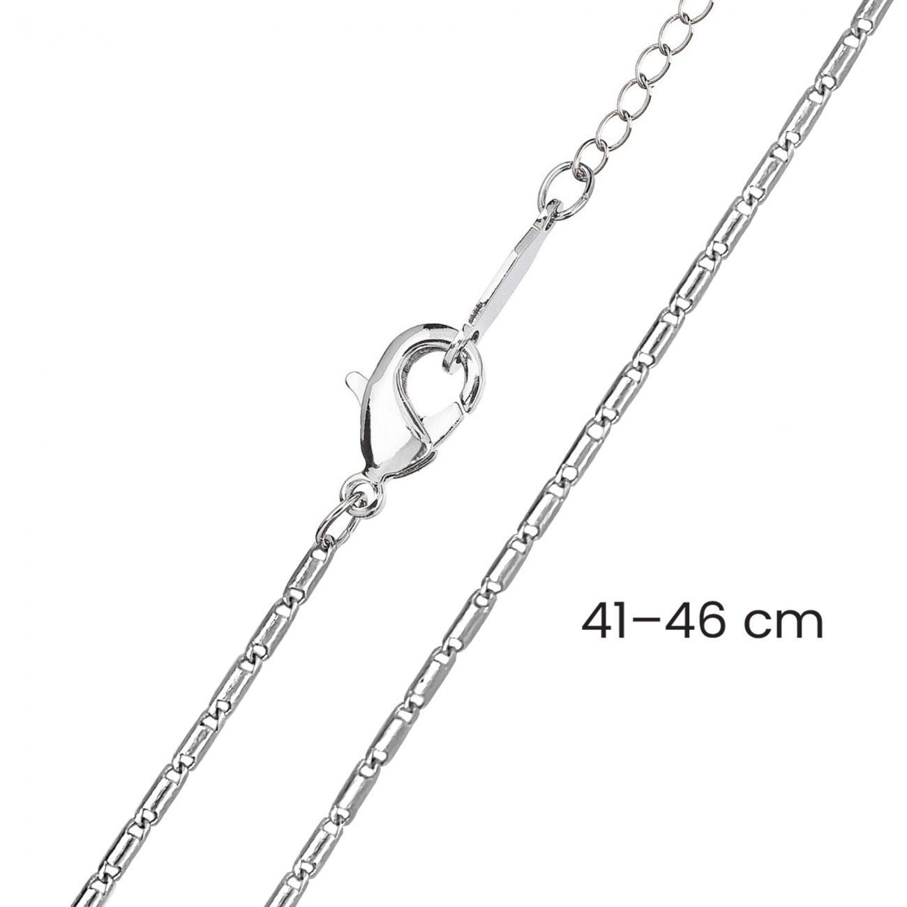 Bižuterní řetízek 52020 je ve stříbrné barvě a má délku 41 cm, má navíc prodlužovací adjustu-řetízek, kde je možné plynule prodloužit délku až na 46 cm, což je velká výhoda.