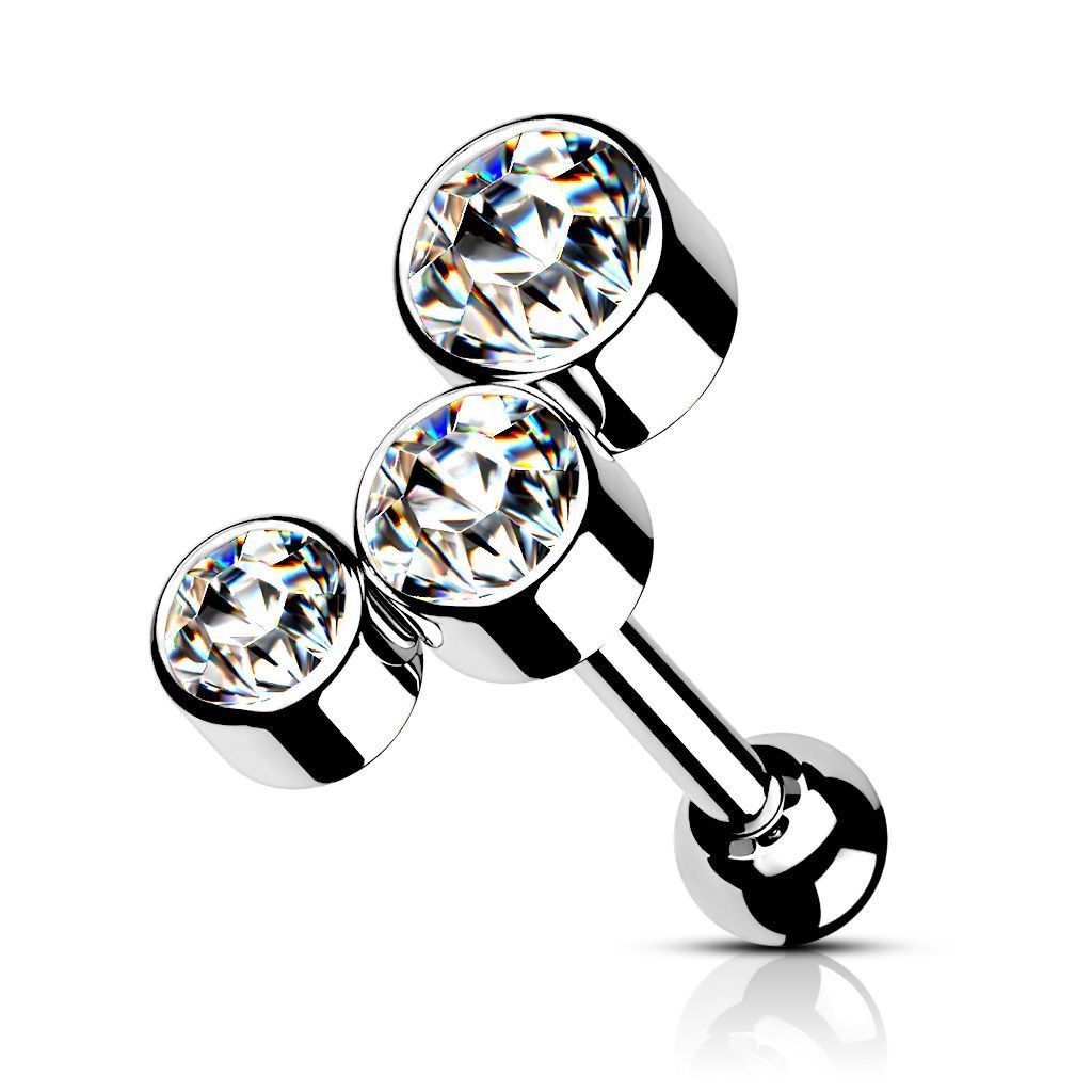 Cartilage piercing do ucha s ozdobnou částí, která je osazena 3mi zirkony.