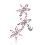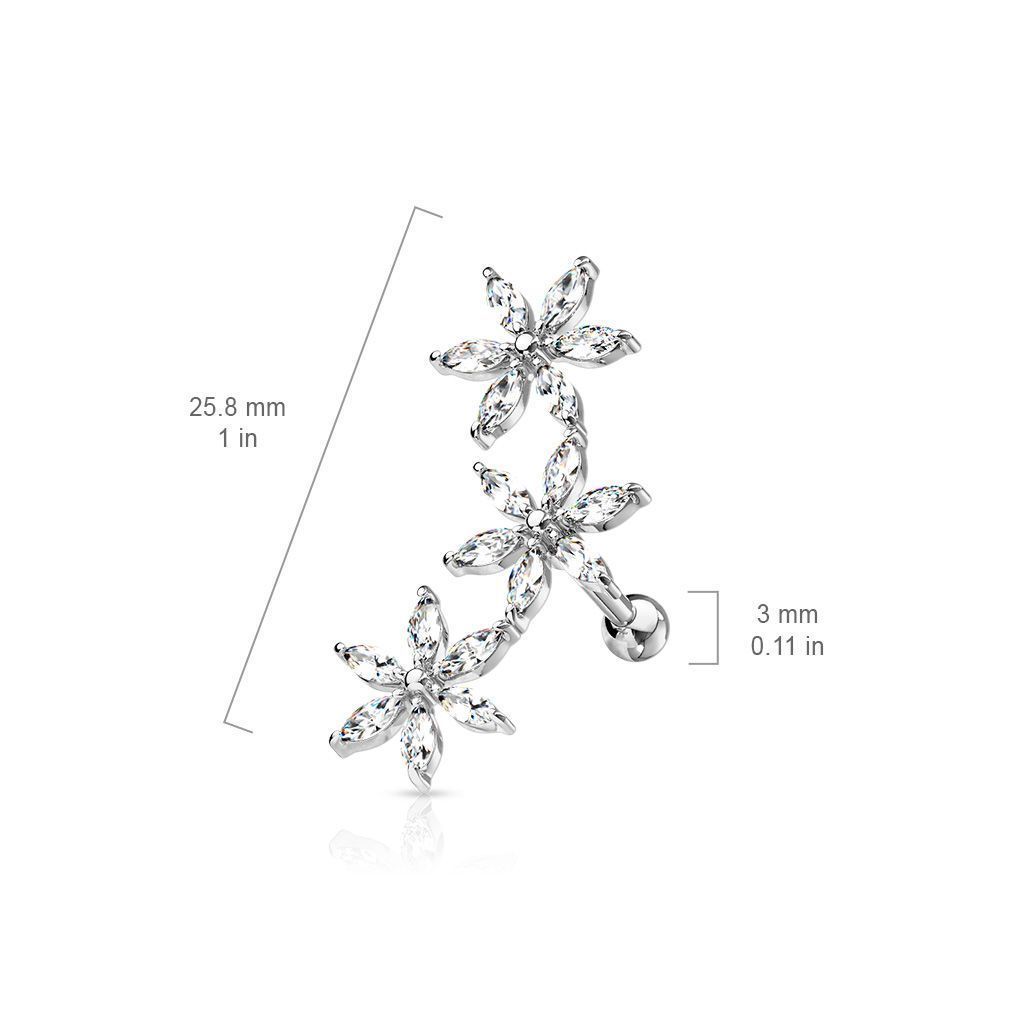 Cartilage piercing do ucha - květinky, které jsou zdobené zirkony.