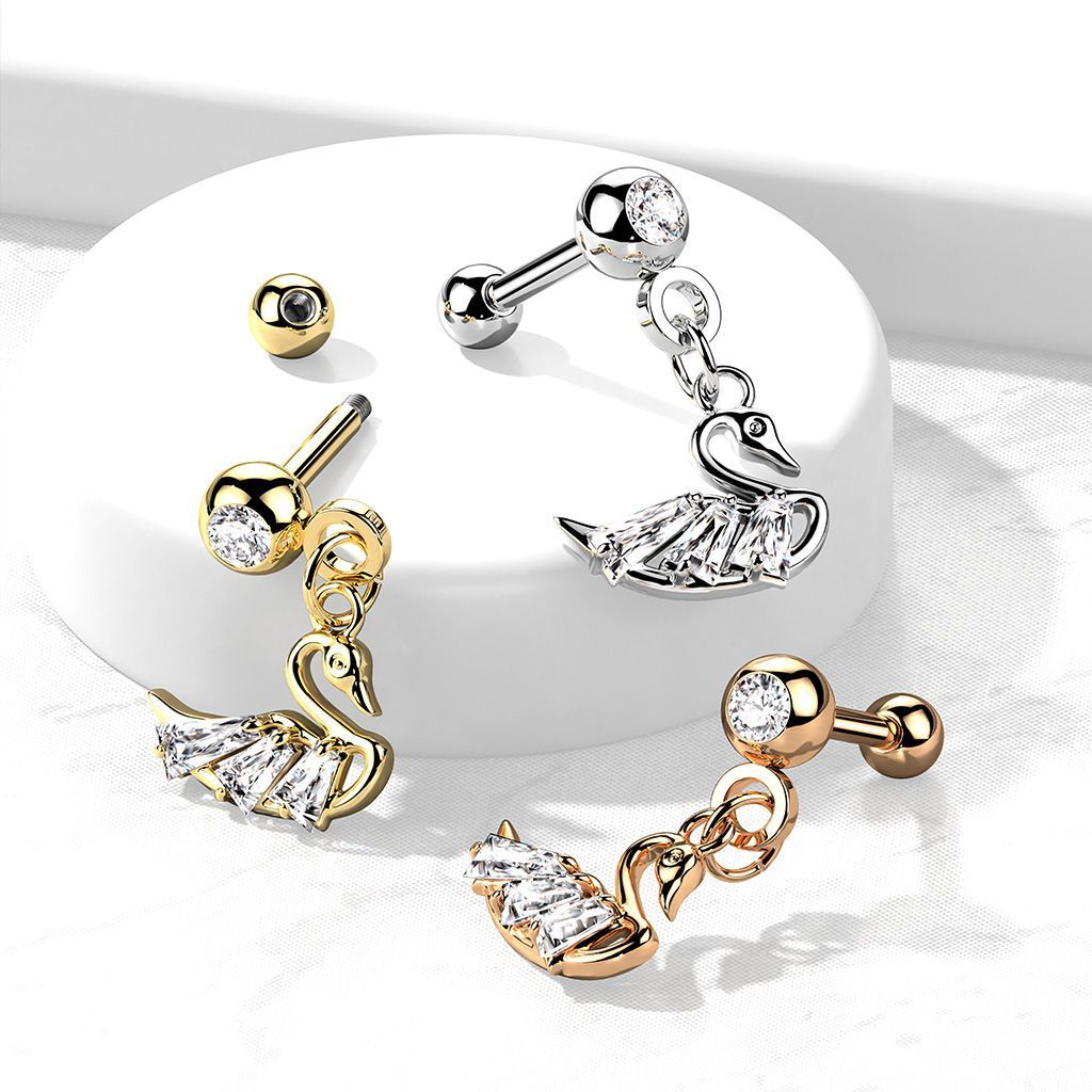 Ocelové šperky a piercing (20269) > Piercing (3897) > Piercing do ucha (383) > Cartilage piercing do ucha - labuť (žluté zlato)