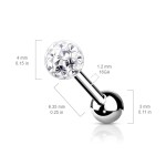 Kulička piercingu je osázena krystaly potaženými vrstvou bezbarvé pryskyřice, která chrání kamínky proti jejich vypadnutí.