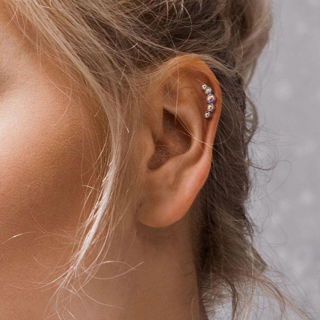 Cartilage piercing do ucha s ozdobou se zirkony.