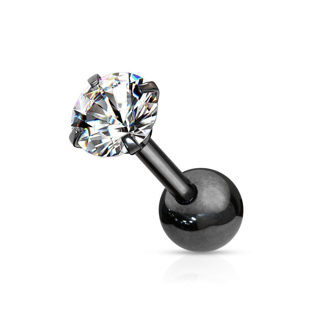 Ocelové šperky a piercing (16771) > Piercing (3891) > Tragus piercing, cartilage (189) > Černý cartilage piercing do ucha, čirý kámen (3 mm)