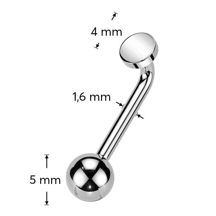 Obě části piercingu mají vnitřní závit. Placička je o průměru 4 mm. Kulička o průměru 5 mm a je zdobena čirým zirkonem.