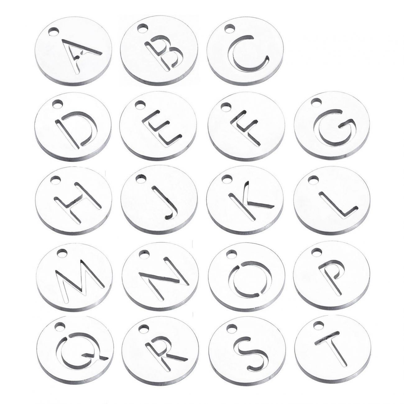 Ocelové šperky a piercing (16773) > Komponenty na šperky (416) > Ocelové komponenty (332) > Drobný kulatý ocelový přívěsek - iniciála
