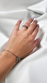 Dvojitý ocelový prsten zdobený motivy kříže. Jeden z křížků je osazen čirými zirkony.