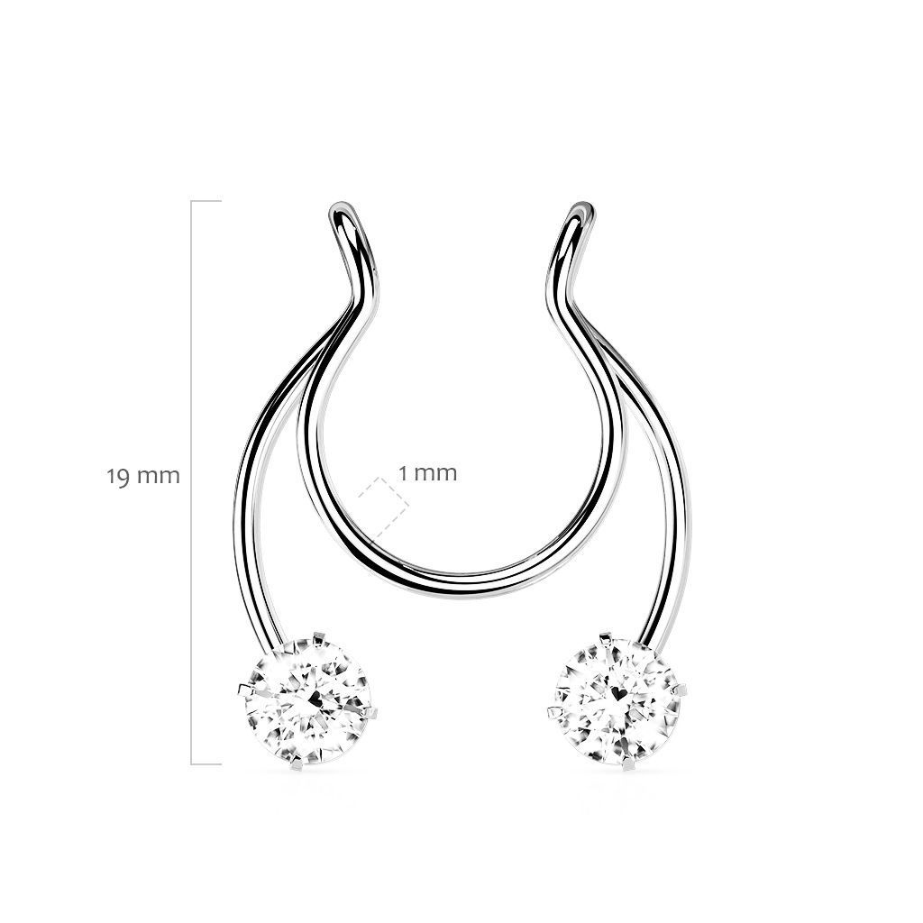 Falešný piercing - falešná septum piercing do nosu z chirurgické oceli 316L ozdobený čirými zirkony.