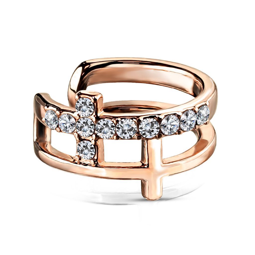 Ocelové šperky a piercing (14075) > Piercing (3897) > Falešný piercing (147) > Falešný piercing do ucha - klips s čirými kamínky (růžové zlato)
