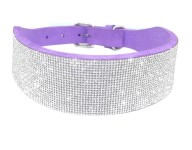 Fialový semišový obojek se zirkony vel. S