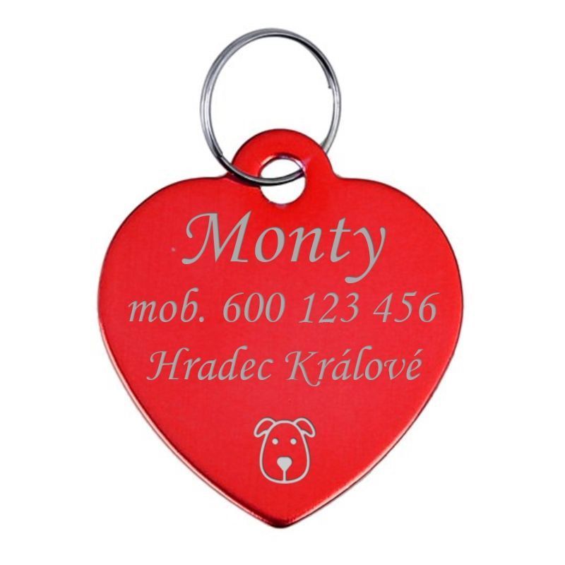 Hliníková psí známka srdce (červená)