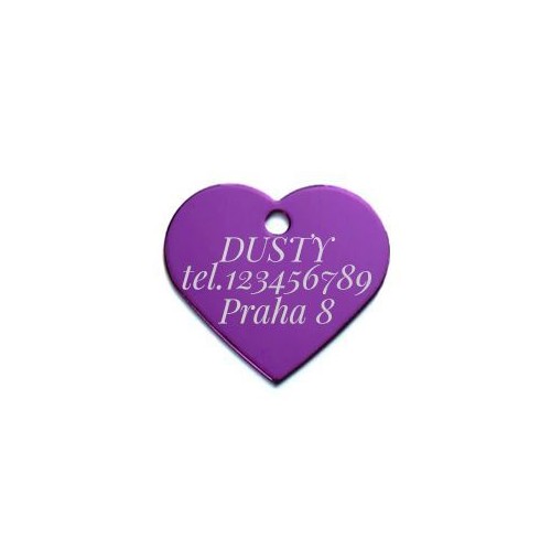 Hliníková psí známka srdíčko velké (tmavě růžová)