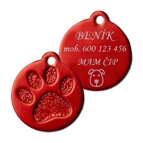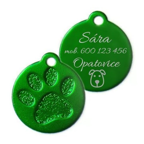 Dodejte obojku vašeho mazlíčka stylový a praktický doplněk s naší lehkou a odolnou hliníkovou zvířecí známkou ve tvaru kruhu, která má na zadní straně tlapku. Tato známka je dostupná v různých barvách, což vám umožní vybrat tu, která nejlépe ladí s osobností vašeho čtyřnohého přítele.