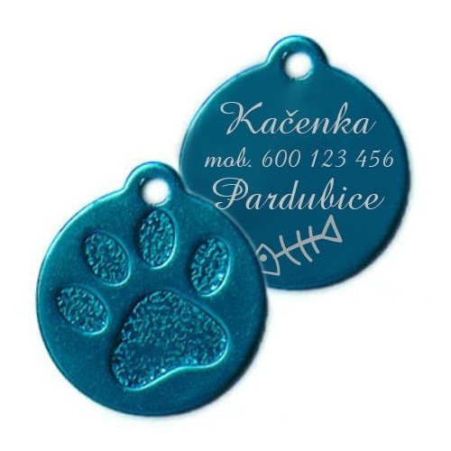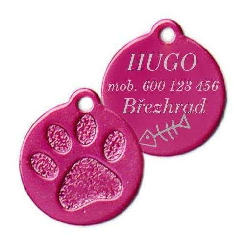 Ocelové šperky a piercing (16673) > Šperky pro zvířátka (55) > Hliníková psí známka tlapka velká (fialová)