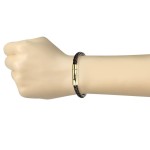 Hnědý kožený proplétaný náramek se zapínáním z chirurgické oceli v povrchové úpravě v barvě žlutého zlata.
