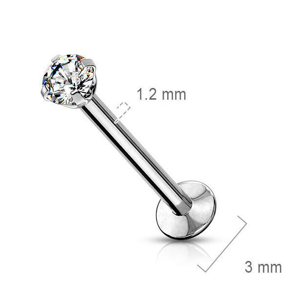 Ocelové šperky a piercing (16714) > Piercing (3958) > Piercing do brady (382) > chirurgická ocel 316L (231) > Labreta PUSH IN zirkon (0,8 x 8 x 2 mm)