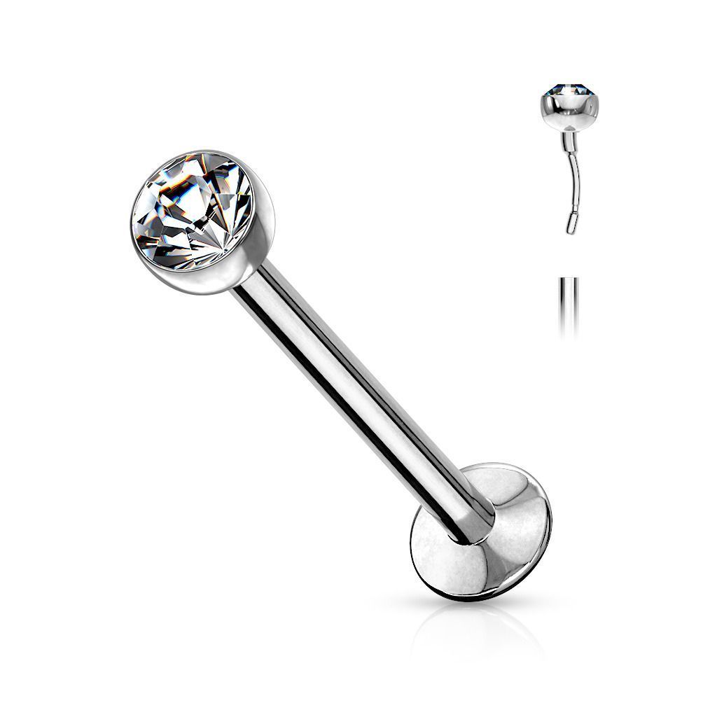 PUSH IN piercing labreta. Piercing zdobený zirkonem čiré barvy.