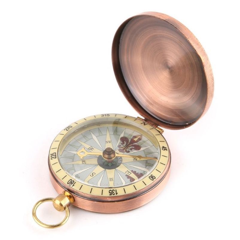 Měděný kompas v uzavíratelném kovovém pouzdru