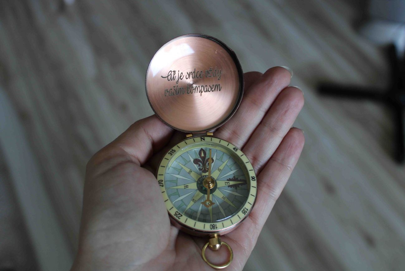 Ocelové šperky a piercing (28914) > Ryté dárkové předměty (343) > Měděný kompas v uzavíratelném kovovém pouzdru
