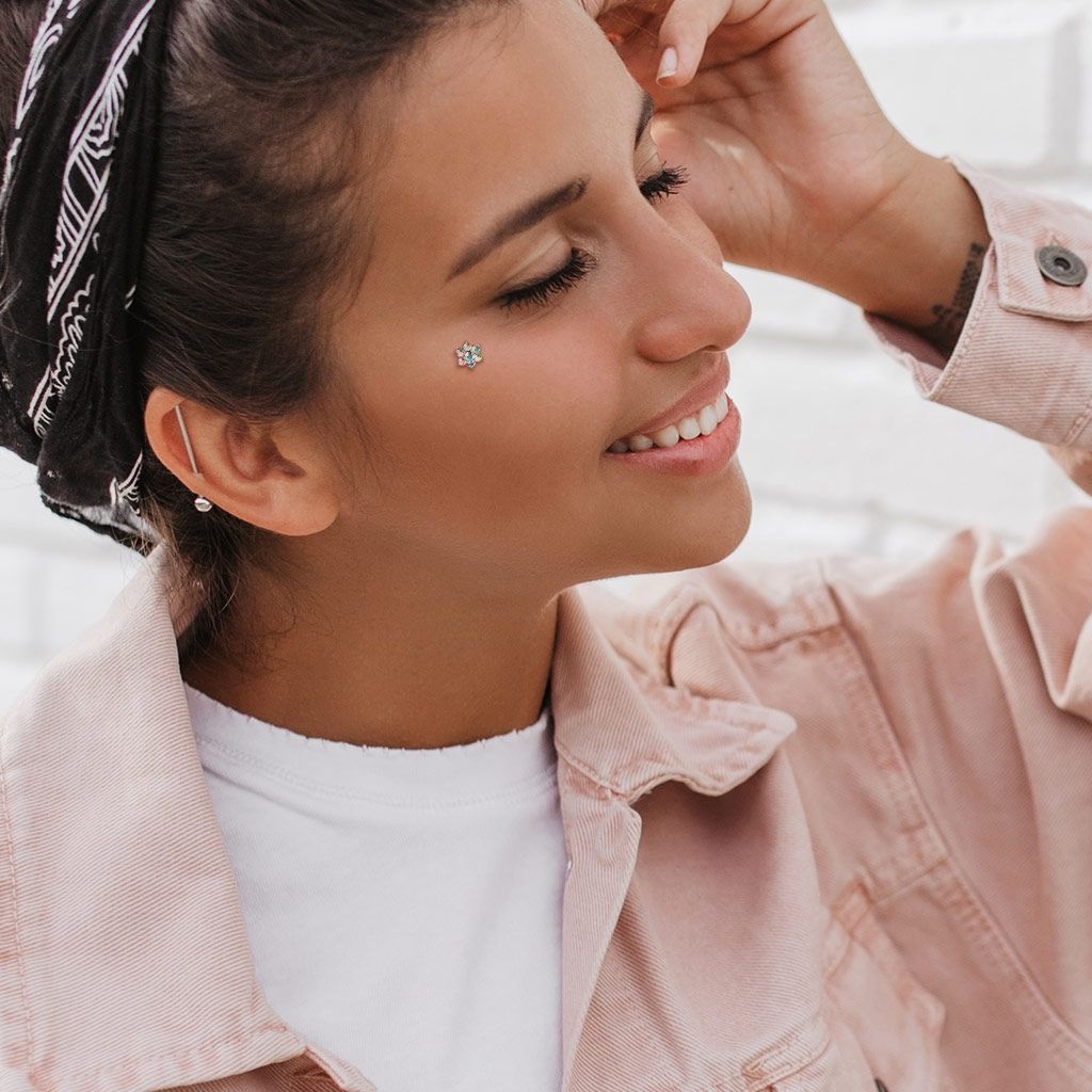 Microdermal - vrchní ozdobná část k microdermalu ve tvaru kytičky zdobené zirkony.