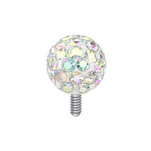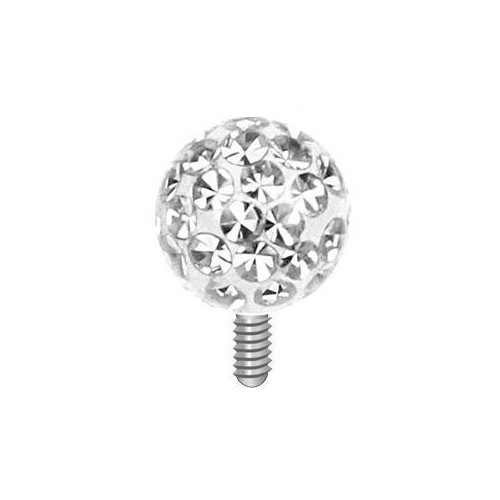 Vrchní šroubovací ozdobný díl k mikrodermálnímu šperku, vyroben z chirurgické oceli. Šperk je osazen krystaly, které jsou zalité vrstvou bezbarvé pryskyřice, což chrání před vypadáváním krystalů.