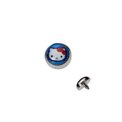 Vrchní šroubovací ozdobný díl k mikrodermálnímu šperku, vyroben z chirurgické oceli, zdobený obrázkem kočičky hello kitty.