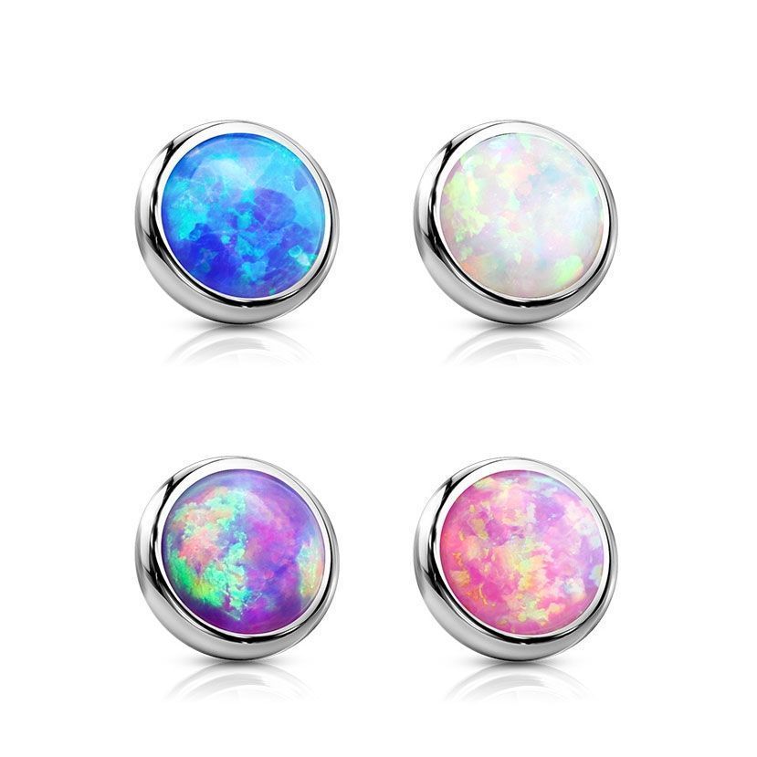 Ocelové šperky a piercing (20047) > Piercing (3915) > Náhradní díly (250) > Náhradní kamínek opál k labretě, průměr 3 mm (modrá)