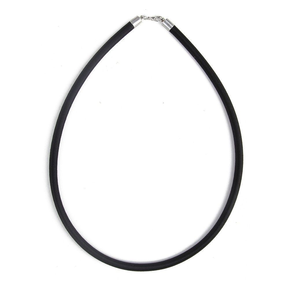 Náhrdelník, pevná šňůrka o šíři 5 mm, zakončená očky a karabinou.