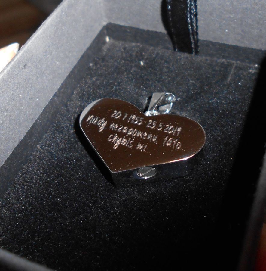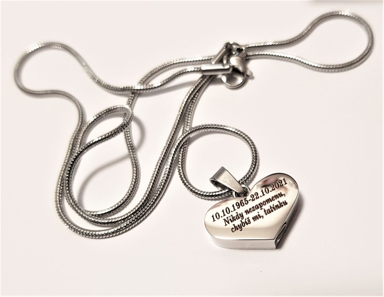 Náhrdelník - pamětní přívěsek, pietní přívěsek, přívěsek na popel srdce