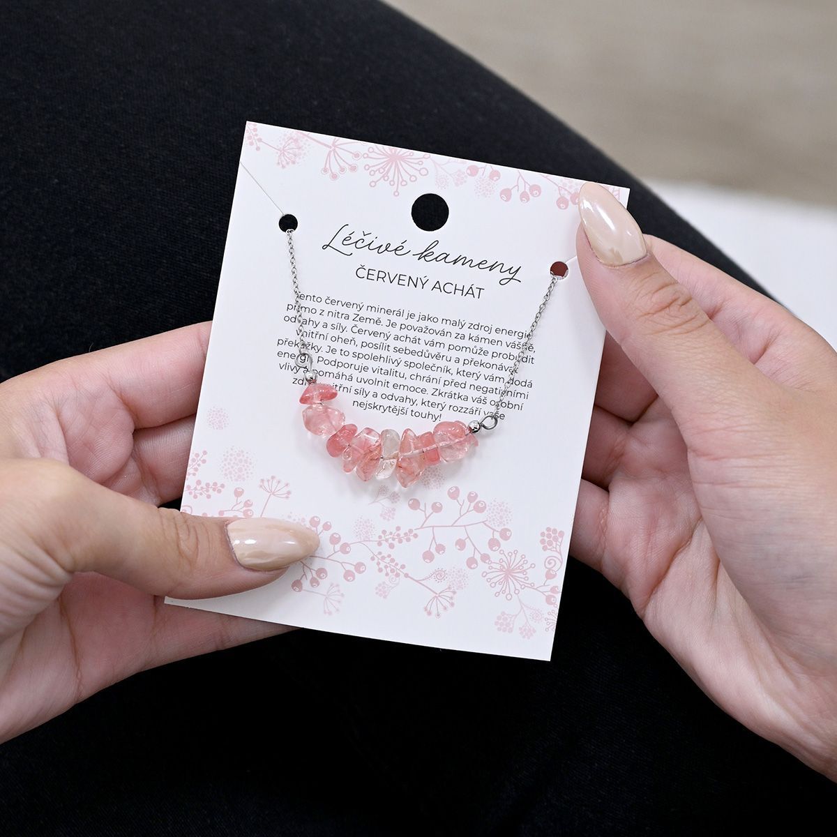 Náhrdelník s kamenem červený achát 42037.3 ocel