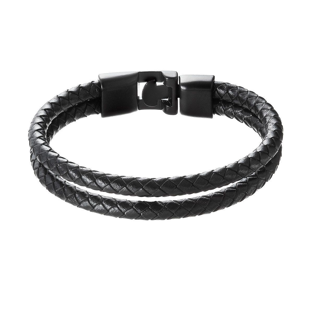 Náramek je vhodným dárkem pro elegantní muže a je tvořen zapletenými náramky kulatého průřezu z koženky černé barvy.