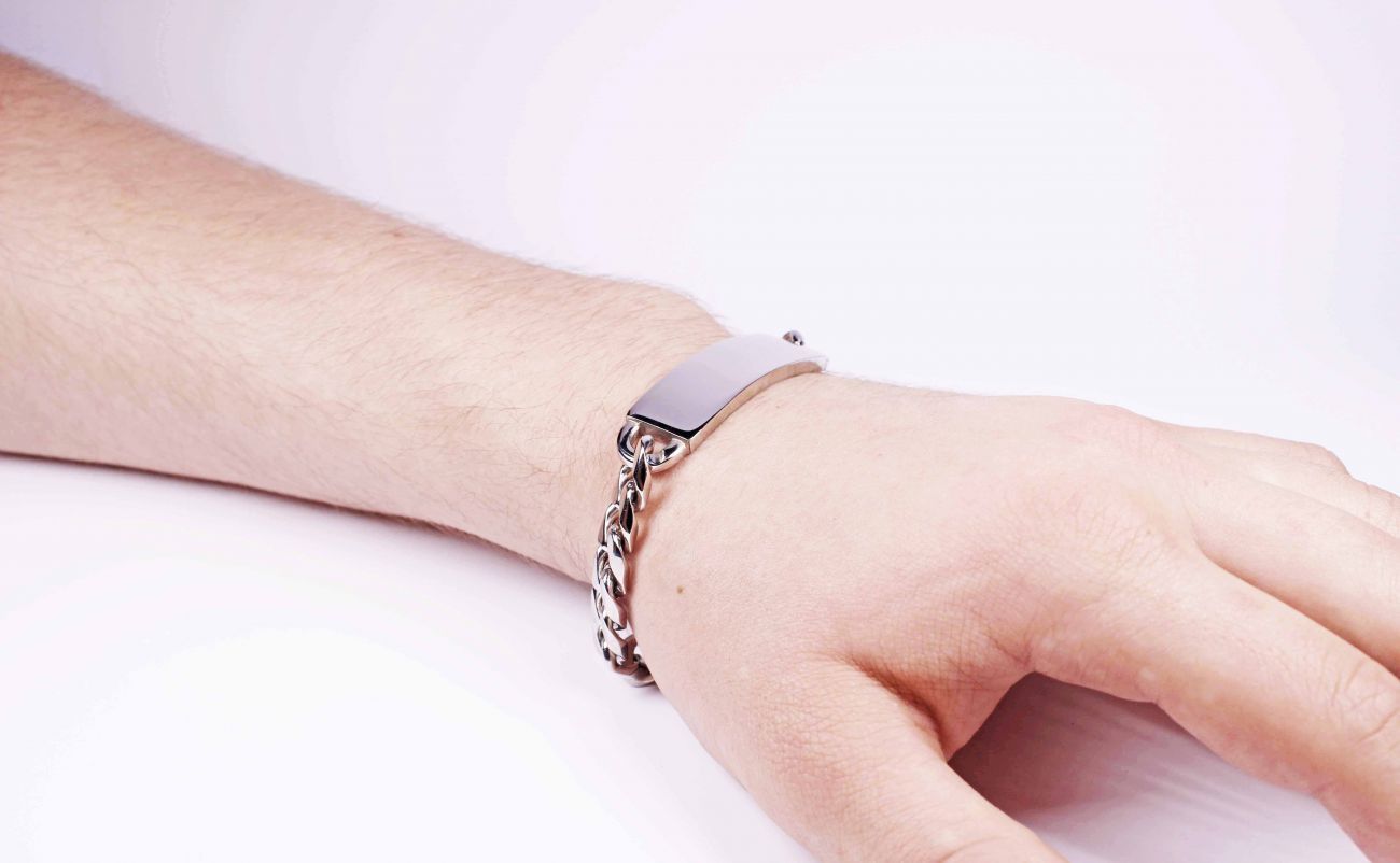 Náramek z chirurgické oceli s destičkou
