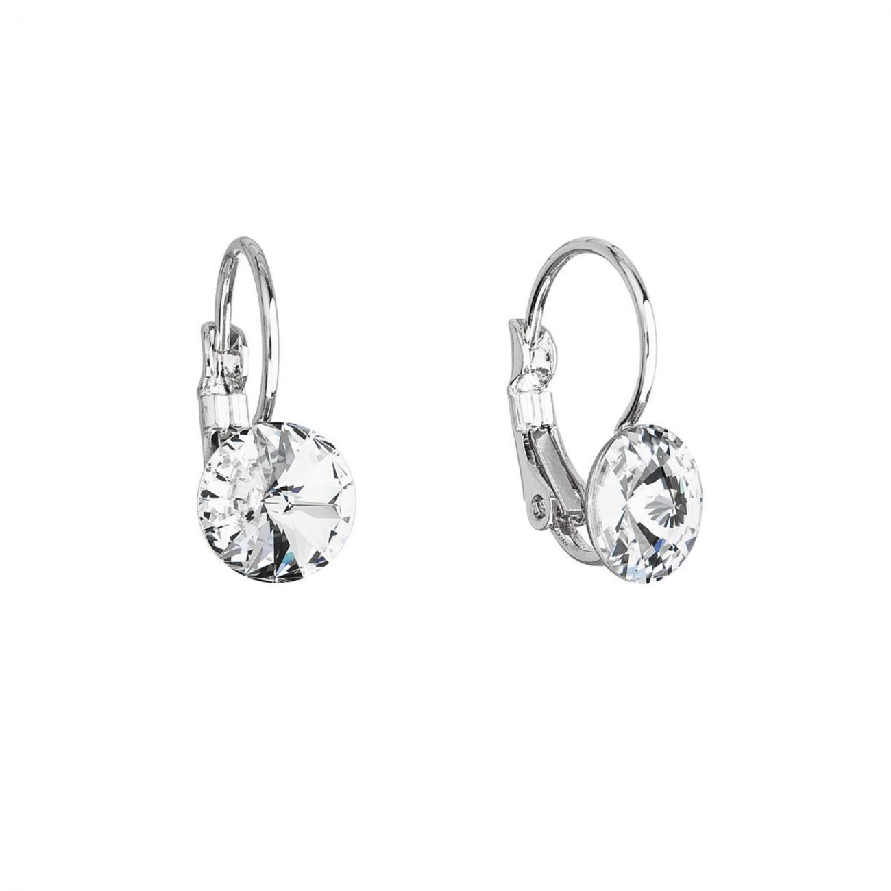 Náušnice mají délku 17 mm a zapínají se na klapku. Šperk je zdoben kulatým 8 mm širokým Preciosa krystalem v bílé barvě.