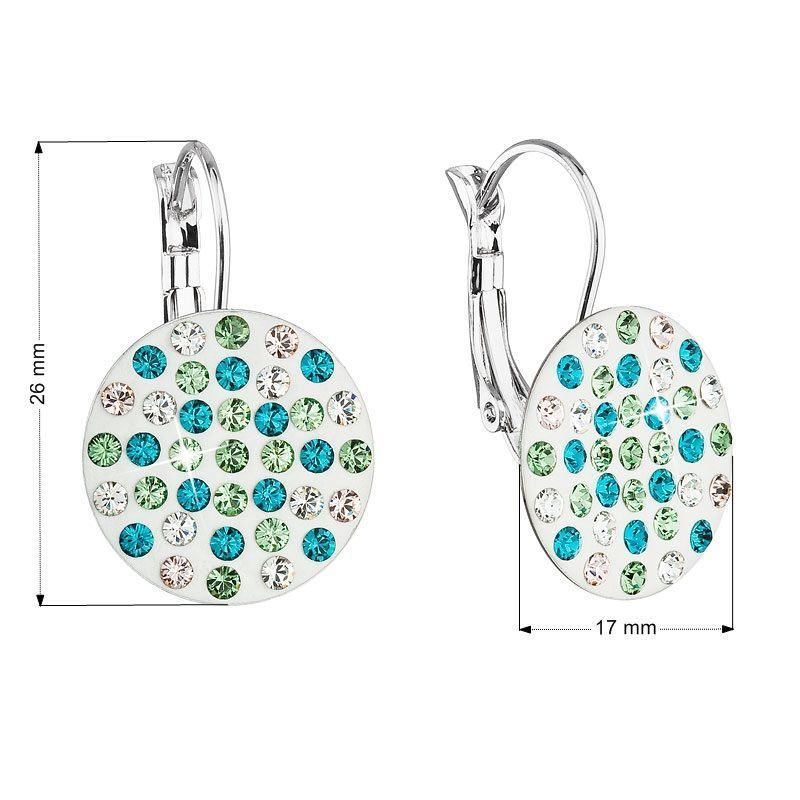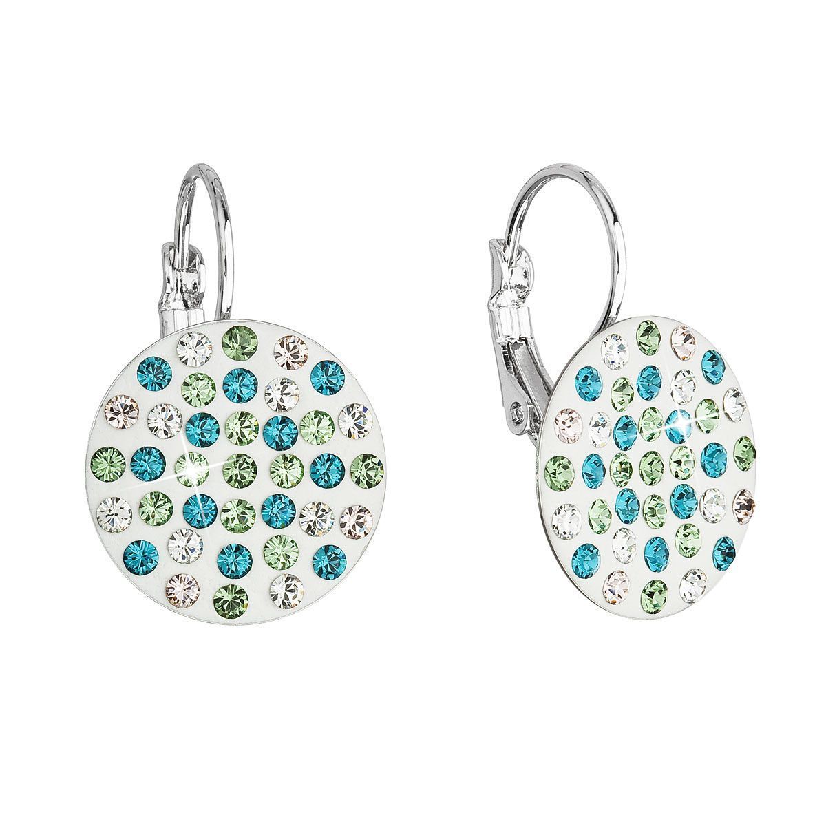 Kulaté náušnice 51033.3 o průměru 18 mm jsou osázeny Swarovski krystaly v zelené, modré a bílé barvě. Velice snadno je zapnete na klapku, která spolehlivě zabrání nechtěné ztrátě. Šperk neobsahuje nikl, a tak je vhodný pro citlivé osoby i alergiky. Náušnice 51033.3 s krystaly Swarovski pro vás ručně vyrobily naše šikovné šperkařky v Jablonci nad Nisou. Poctivou ruční práci vám dokládá pečeť kvality. O pravosti Swarovski krystalu vás přesvědčí certifikát pravosti, který je k výrobku přiložen.