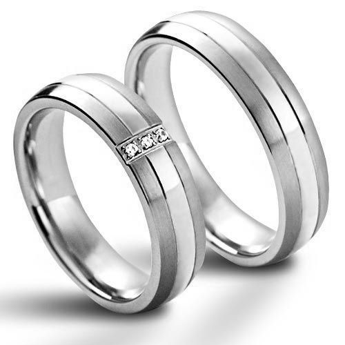 Matný ocelový snubní prsten zdobený lesklým pruhem