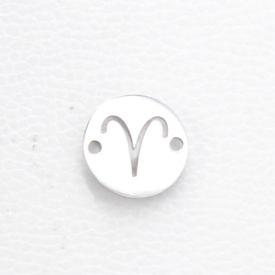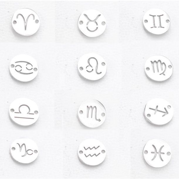Kulatý ocelový přívěsek znamení zvěrokruhu. Přívěsek je určen k výrobě náramku nebo náhrdelníku.