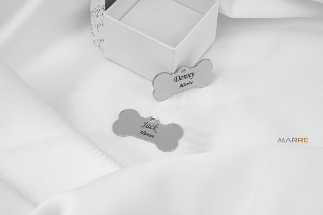 Hledáte stylový způsob, jak ozdobit a zároveň identifikovat svého nejlepšího přítele? Naše ocelové psí známky jsou tím pravým řešením! Praktická a stylová psí známka z chirurgické oceli ve tvaru kosti je ideální volbou pro každého mazlíčka. Je lehká, odolná a díky hladkému povrchu vhodná pro gravírování jména, telefonu nebo jiné identifikace.