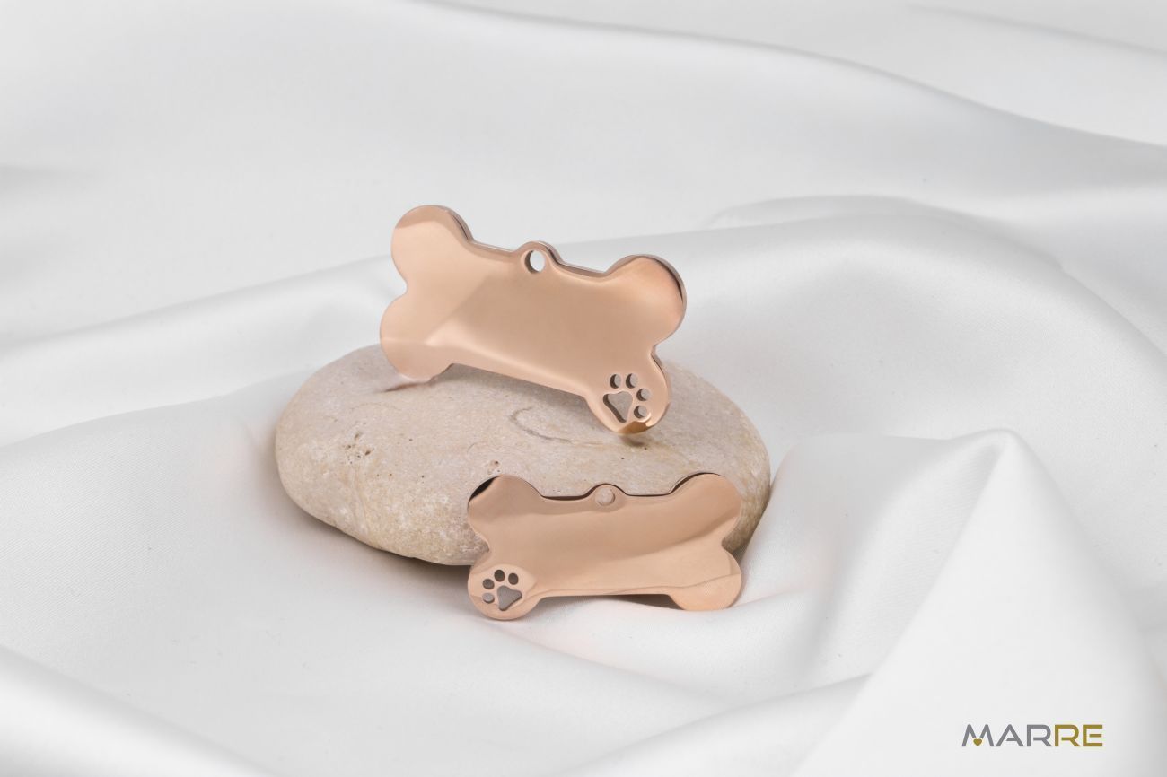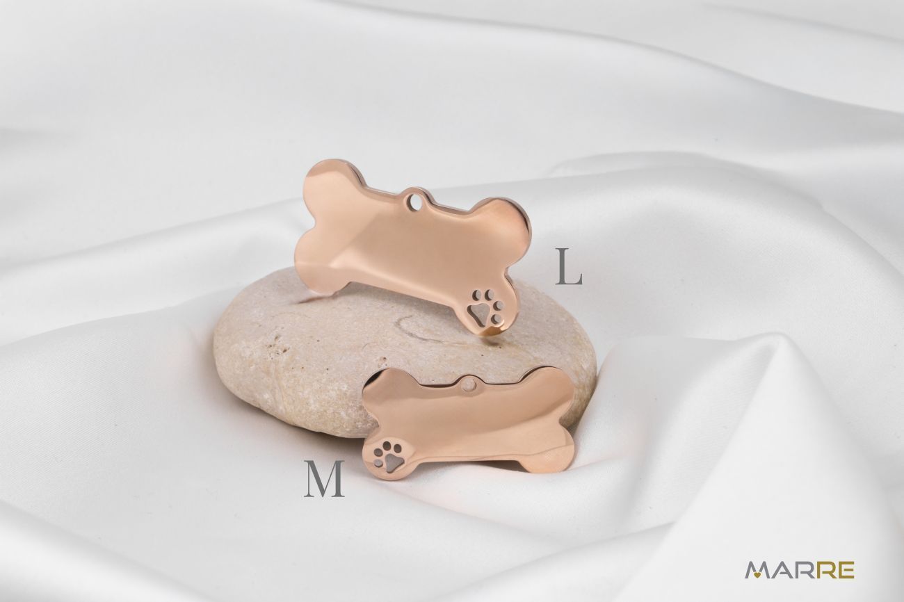 Hledáte stylový způsob, jak ozdobit a zároveň identifikovat svého nejlepšího přítele? Naše ocelové psí známky jsou tím pravým řešením! Praktická a stylová psí známka z chirurgické oceli ve tvaru kosti je ideální volbou pro každého mazlíčka. Je lehká, odolná a díky hladkému povrchu vhodná pro gravírování jména, telefonu nebo jiné identifikace.