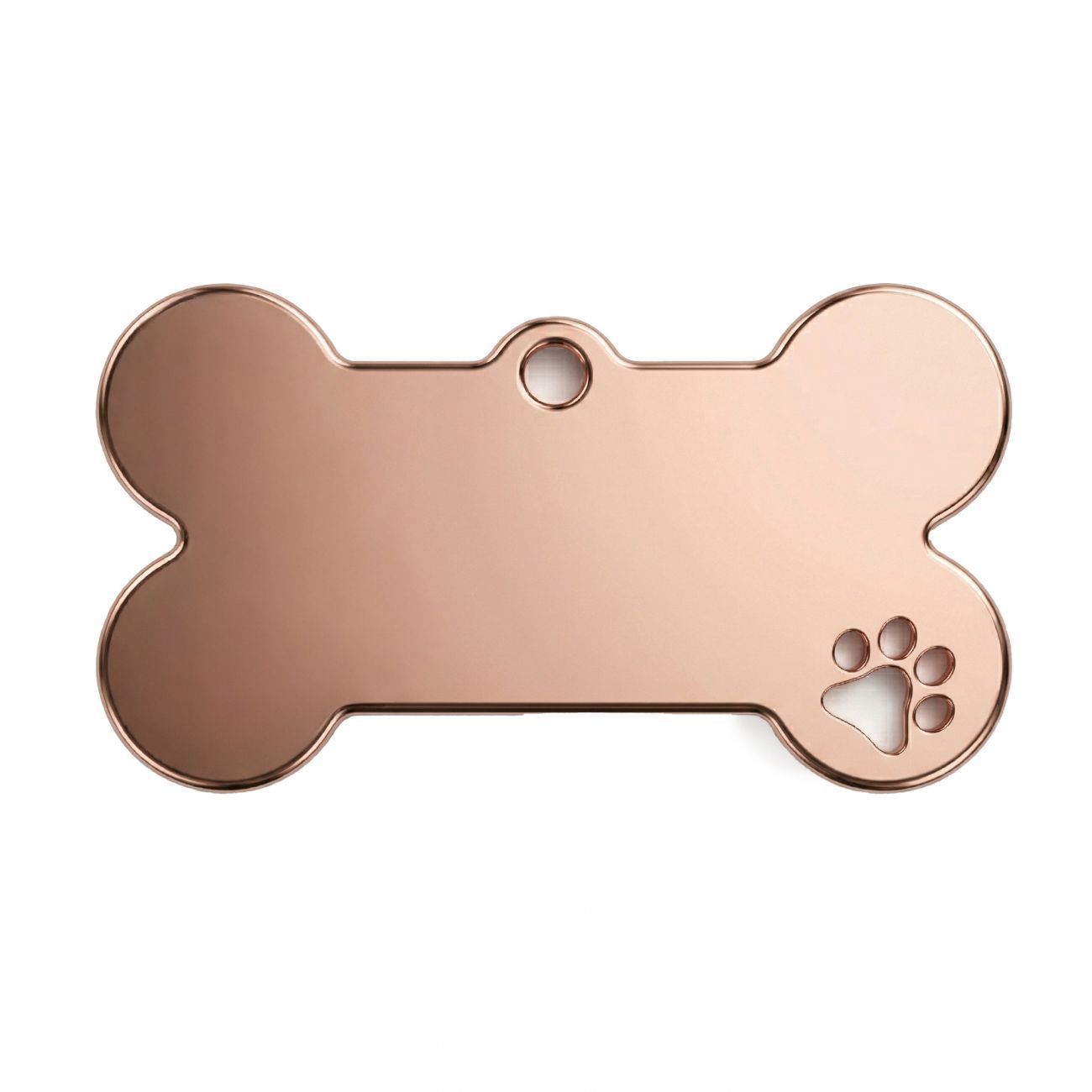 Ocelová psí známka ve tvaru kosti s tlapičkou růžovozlatá