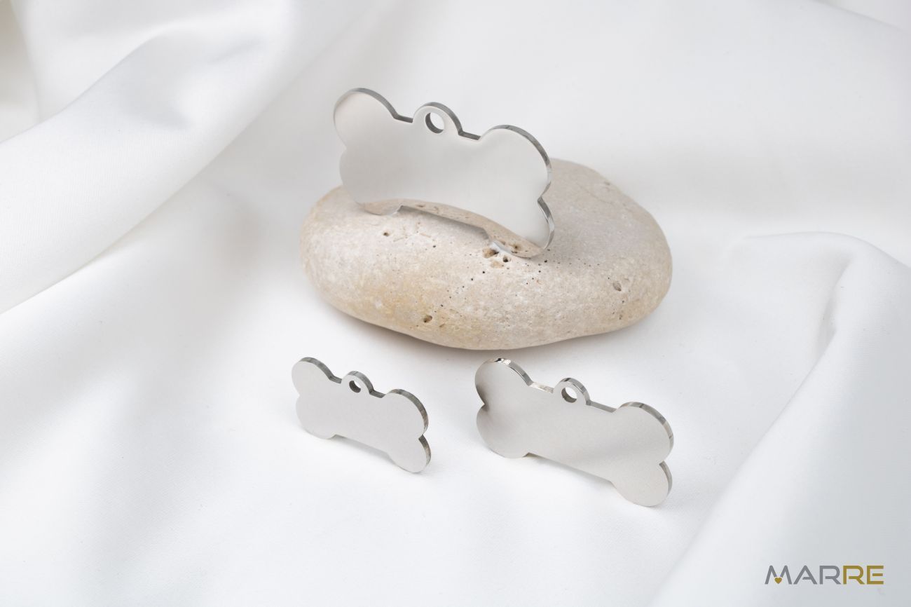 Hledáte stylový způsob, jak ozdobit a zároveň identifikovat svého nejlepšího přítele? Naše ocelové psí známky jsou tím pravým řešením! Praktická a stylová psí známka z chirurgické oceli ve tvaru kosti je ideální volbou pro každého mazlíčka. Je lehká, odolná a díky hladkému povrchu vhodná pro gravírování jména, telefonu nebo jiné identifikace.
