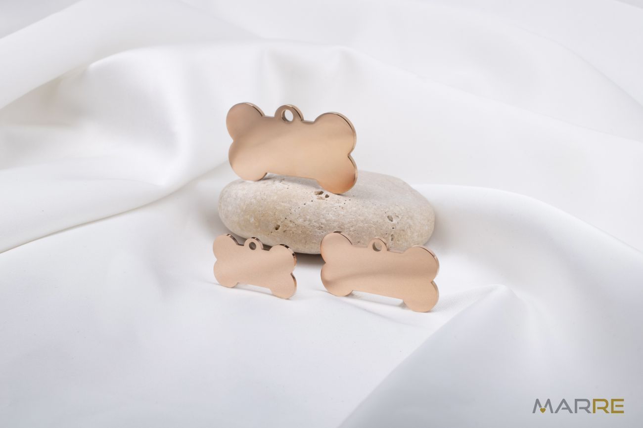 Hledáte stylový způsob, jak ozdobit a zároveň identifikovat svého nejlepšího přítele? Naše ocelové psí známky jsou tím pravým řešením! Praktická a stylová psí známka z chirurgické oceli ve tvaru kosti je ideální volbou pro každého mazlíčka. Je lehká, odolná a díky hladkému povrchu vhodná pro gravírování jména, telefonu nebo jiné identifikace.