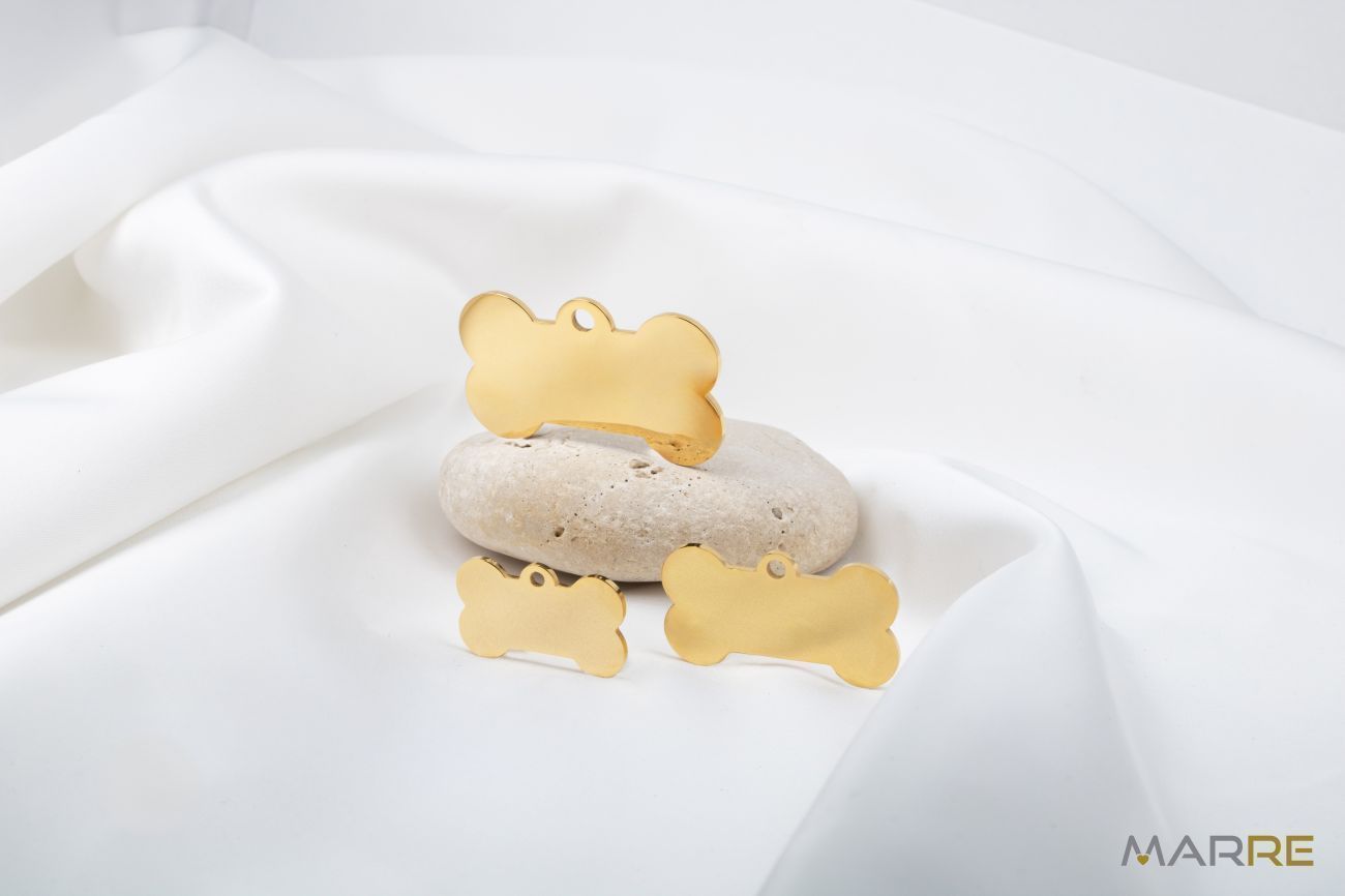 Hledáte stylový způsob, jak ozdobit a zároveň identifikovat svého nejlepšího přítele? Naše ocelové psí známky jsou tím pravým řešením! Praktická a stylová psí známka z chirurgické oceli ve tvaru kosti je ideální volbou pro každého mazlíčka. Je lehká, odolná a díky hladkému povrchu vhodná pro gravírování jména, telefonu nebo jiné identifikace.