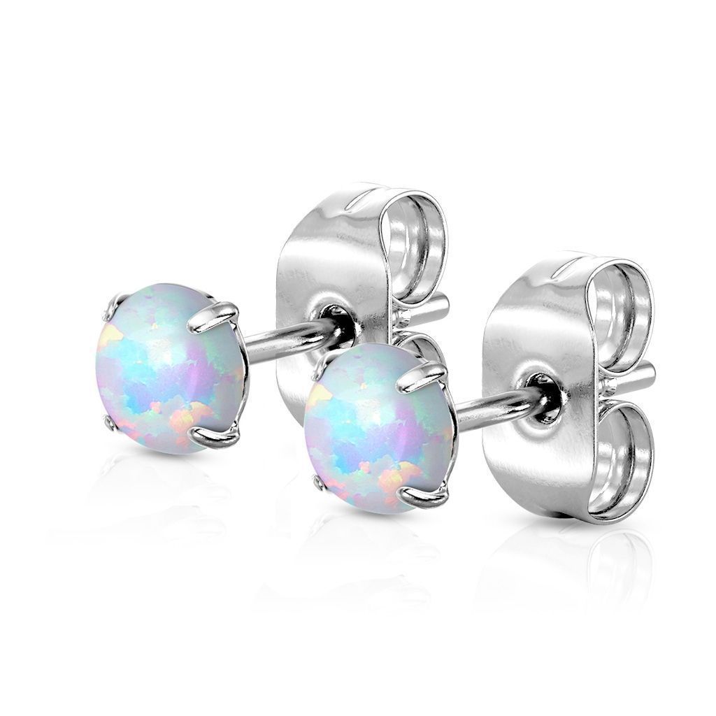 Ocelové náušnice s bílými opály (5 mm)
