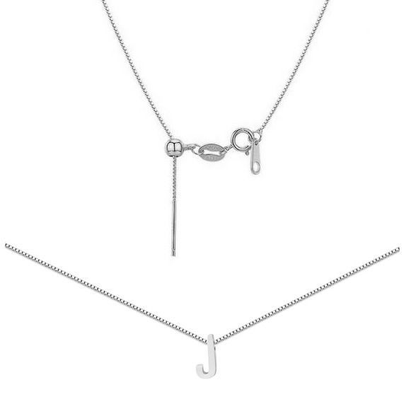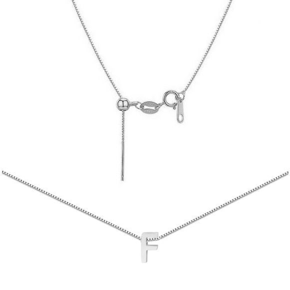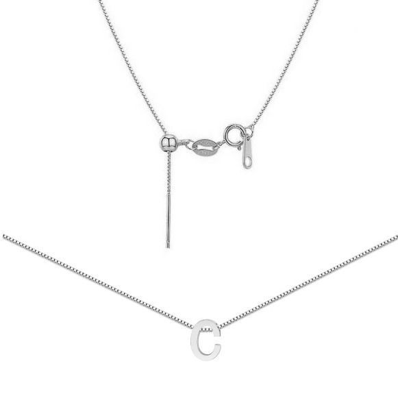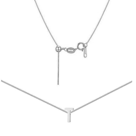 Ocelový náhrdelník - jemný řetízek čtvercového tvaru s libovolně nastavitelnou délkou až 45 cm. Náhrdelník je zdobený navlečeným přívěskem ve tvaru tiskacího písmene.