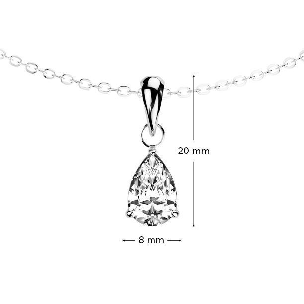 Dámský ocelový náhrdelník - jemný očkový řetízek zdobený přívěskem s čirým zirkonem ve tvaru slzy v objímce.