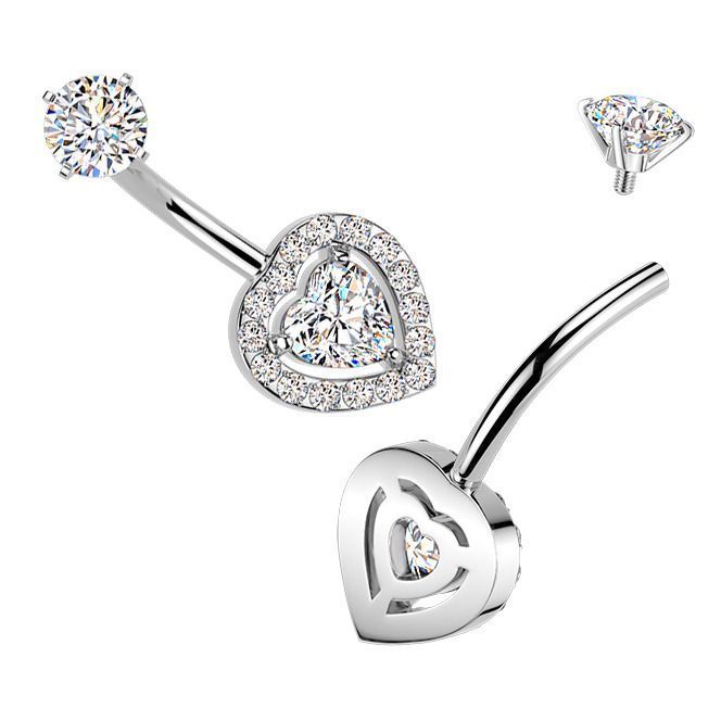 Ocelový piercing do pupíku srdce se zirkony