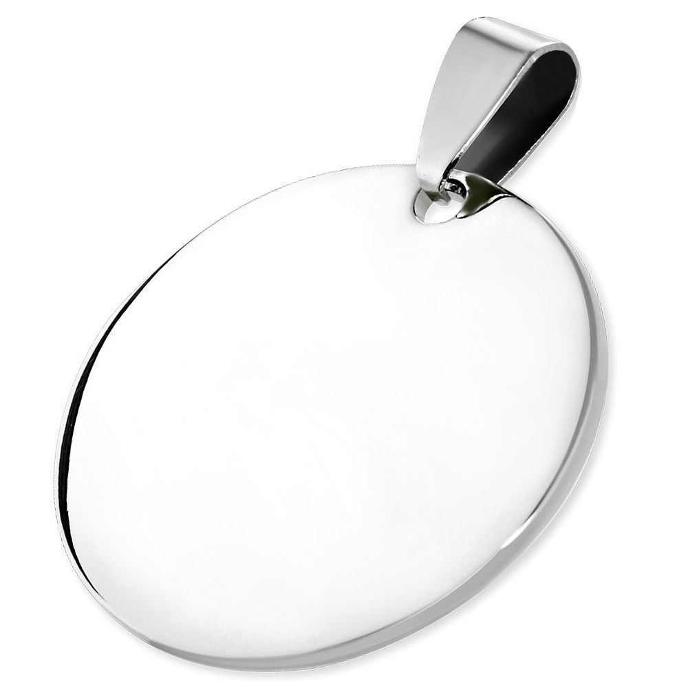 Ocelový přívěsek kulatá destička o průměru 30 mm.