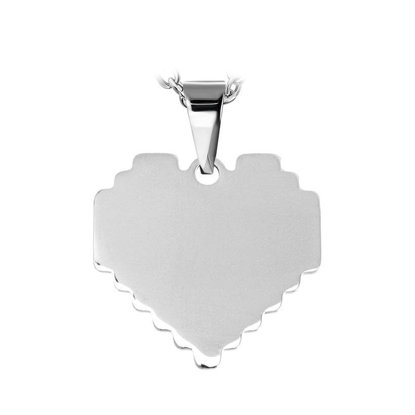 Originální ocelový přívěsek ve tvaru srdce s jemně pixelovým okrajem zaujme moderním pojetím klasického symbolu lásky. Spojuje v sobě emoci, hravý detail a minimalistický styl, díky čemuž je ideální jak pro každodenní nošení, tak jako osobní dárek s významem.