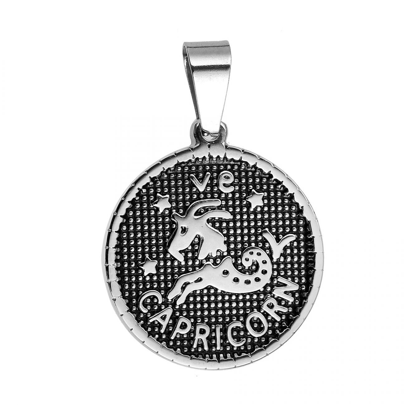 Ocelový přívěsek - kulatá destička se znamením horoskopu.