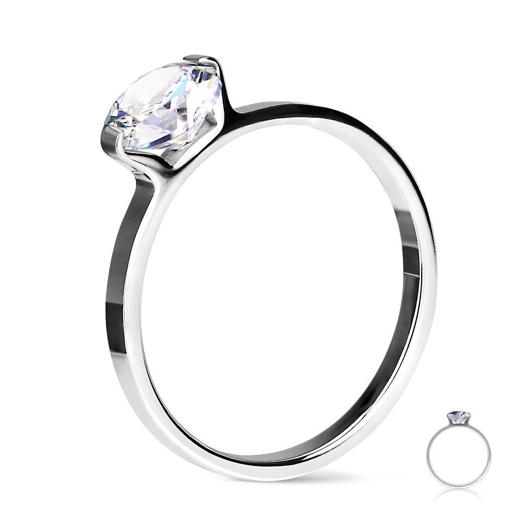 Dámský ocelový prsten zdobený výrazným kubickým zirkonem čiré barvy
