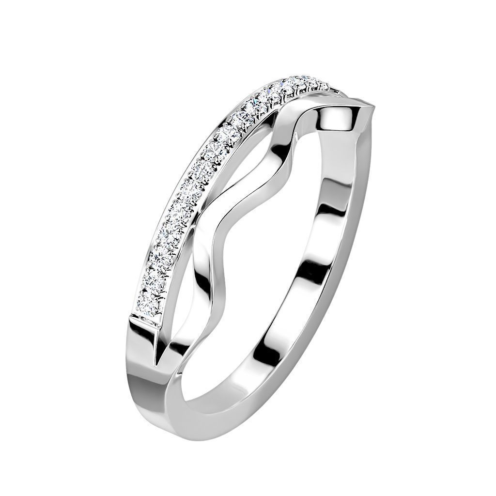 Ocelový prsten s leským povrchem a zirkony. Zdobený vlnkou.